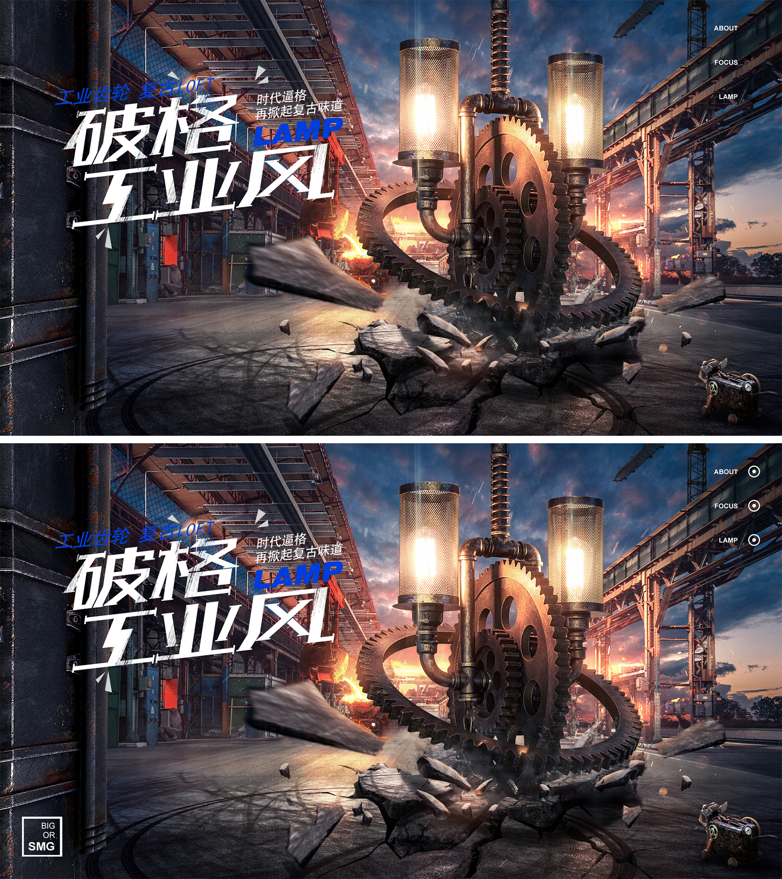 这里出现的线框元素就起到了一定的装饰、衬托画面的作用,以点线面的角度来看则符合点状元素的特点,虽然这类元素对于作品整体而言只是次要的视觉元素,但是有与无的差别还是一目了然的,有此类元素,画面则呈现出一种更加丰富、饱满的视觉感受;而无此类元素,给人的感觉虽然画面元素依然很多,但是总带有单薄、不够饱满、缺少细节的感觉!